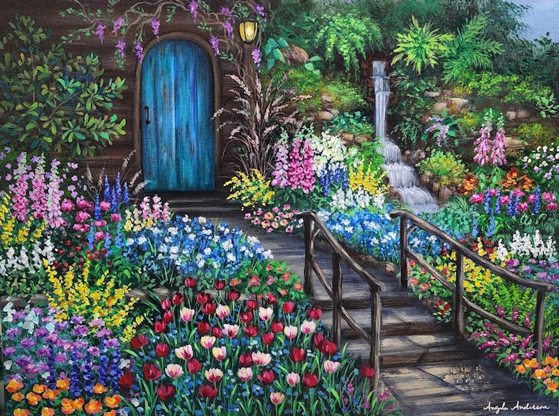 Waterfall Cottage Garden Patreon Exclusive Challenge Acrylic Painting Tutorial Crowdcast